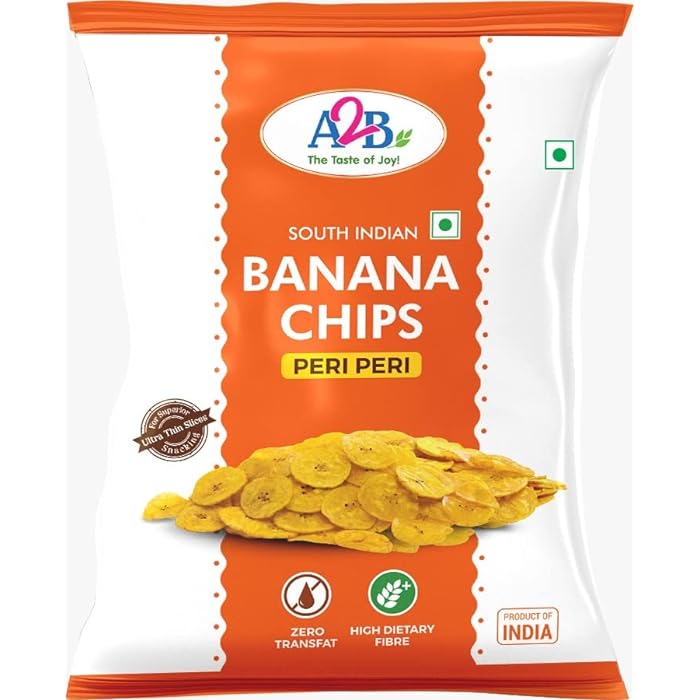 A2B Banana Chips – Peri Peri combine the classic crunch of South Indian banana chips with a bold peri peri spice twist. Made from carefully selected raw bananas, thinly sliced and fried to golden perfection, these chips are then seasoned with a spicy, tangy peri peri blend for a modern, irresistible flavour.