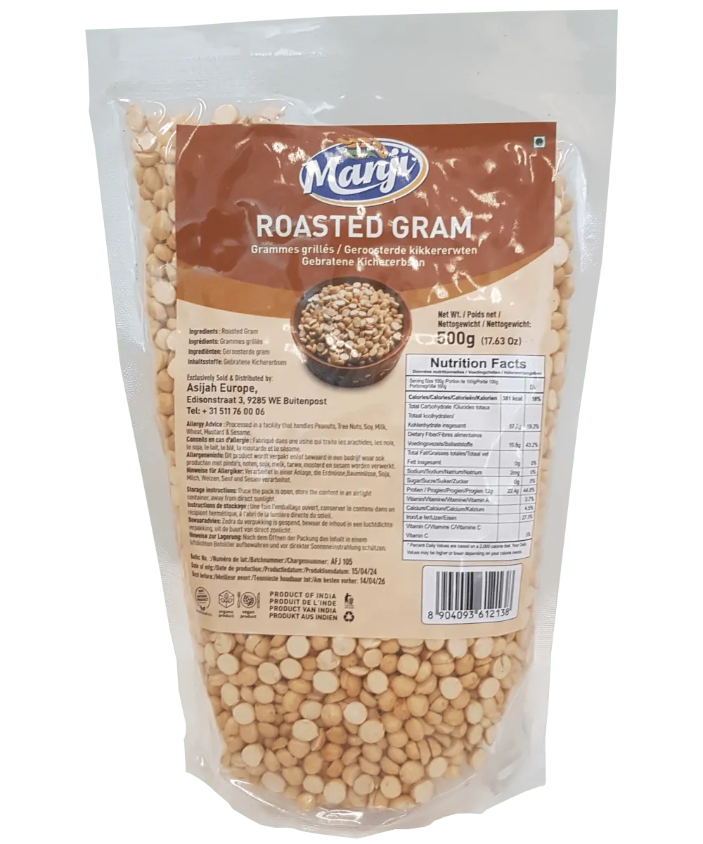Manji Roasted Gram is crisp and protein-rich, perfect for snacks, chutneys, or sweets. Light on the stomach and packed with nutrients. Often used in Tamil recipes. Ideal for quick munching or grinding.