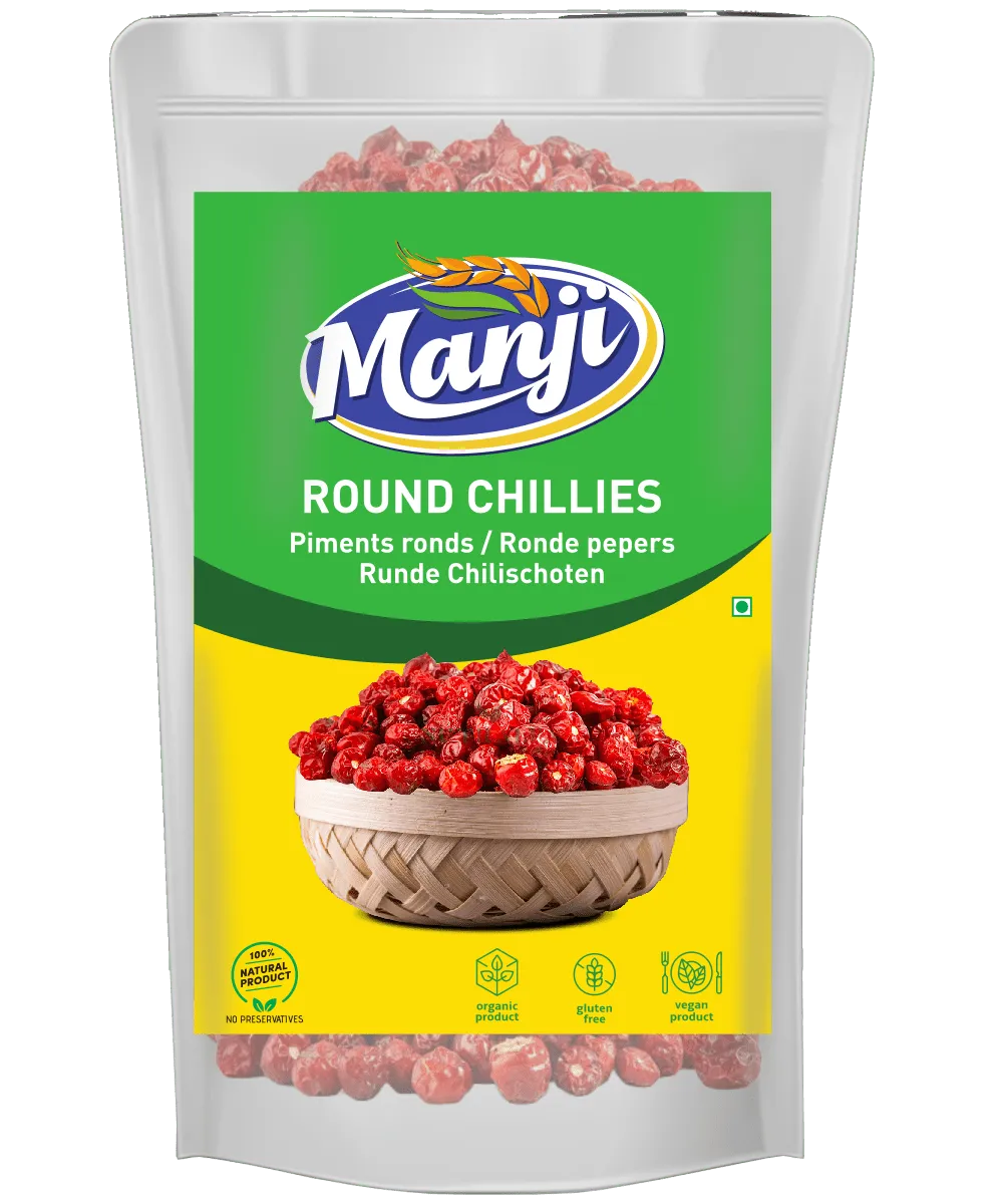 Manji Round Chilli Whole is a bold and spicy addition to any kitchen. Known for their vibrant color and moderate heat, these dried round chillies are widely used in Indian tadkas, chutneys, and spice blends. They add both flavor and aesthetic to the dish. Carefully dried and packed for lasting freshness. Ideal for enhancing everyday recipes or traditional preparations.