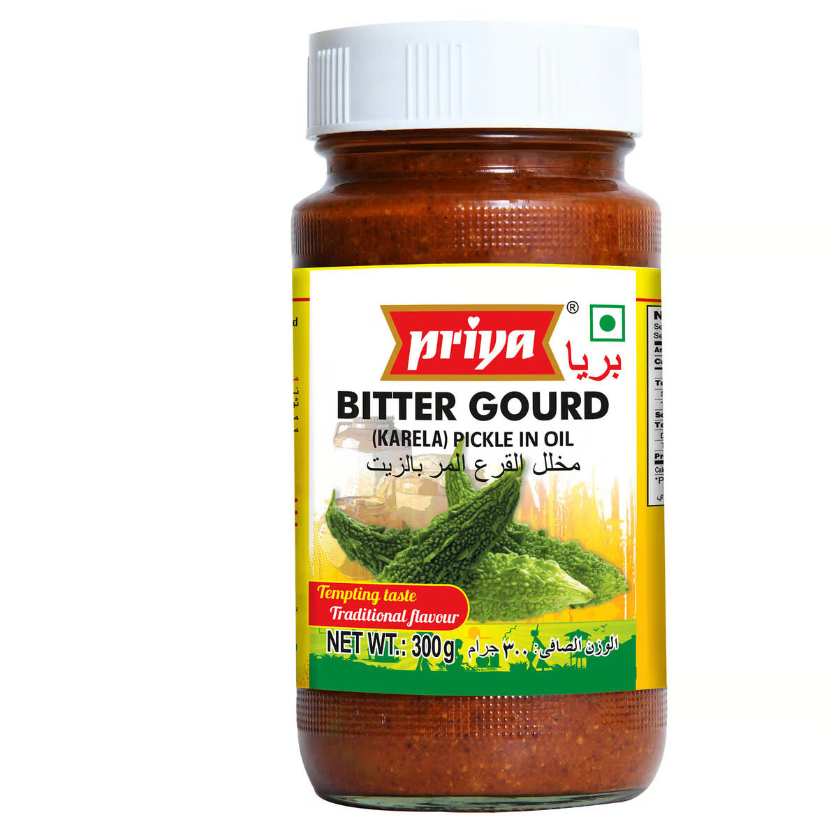 Priya Foods wields the magic wand to make the bitterness of Karela an irresistible engagement. The Karela pickle is specially made with the finest bitter gourd and blends the most appropriate ingredients. The pickle enjoys long life and is simple and best to eat with any dish, any time. Nutrient: Fat (6.93g), saturated fat (0.6g), Carbohydrates (5.26g), Sugar (1.13g), Protein (1.3g), Salt (7.0g) Ingredients: Bitter Gourd Pieces, Iodized Salt, Refined Rice Bran Oil, Lime Juice, Tamarind Extract, Chilli Powder, Fenugreek Powder, Cumin Powder, Acetic Acid, Turmeric Powder, Mustard Seeds, Dry Chillies, Curry Leaves, and Asafoetida. Allergen: NA Storage: Store in a cool and dry place Weight: 300g Origin: India